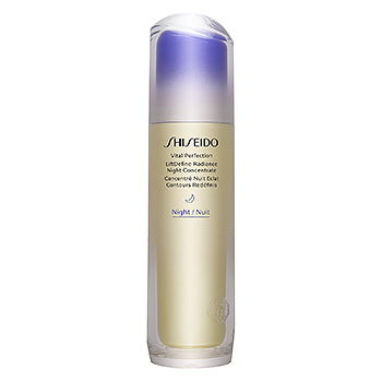 Vital Perfection LiftDefine Radiance Night Concentrate from Shiseido is a night concentrate formulated to combat visible signs of skin aging. Its advanced formula reduces wrinkles, fine lines and sagging, improving skin firmness and elasticity while you sleep. Additionally, it evens out skin tone, minimizing the appearance of dark spots and discolorations, and deeply hydrates, leaving skin smooth, supple and radiant in the morning. It also protects the skin against damage caused by free radicals and other environmental aggressors.